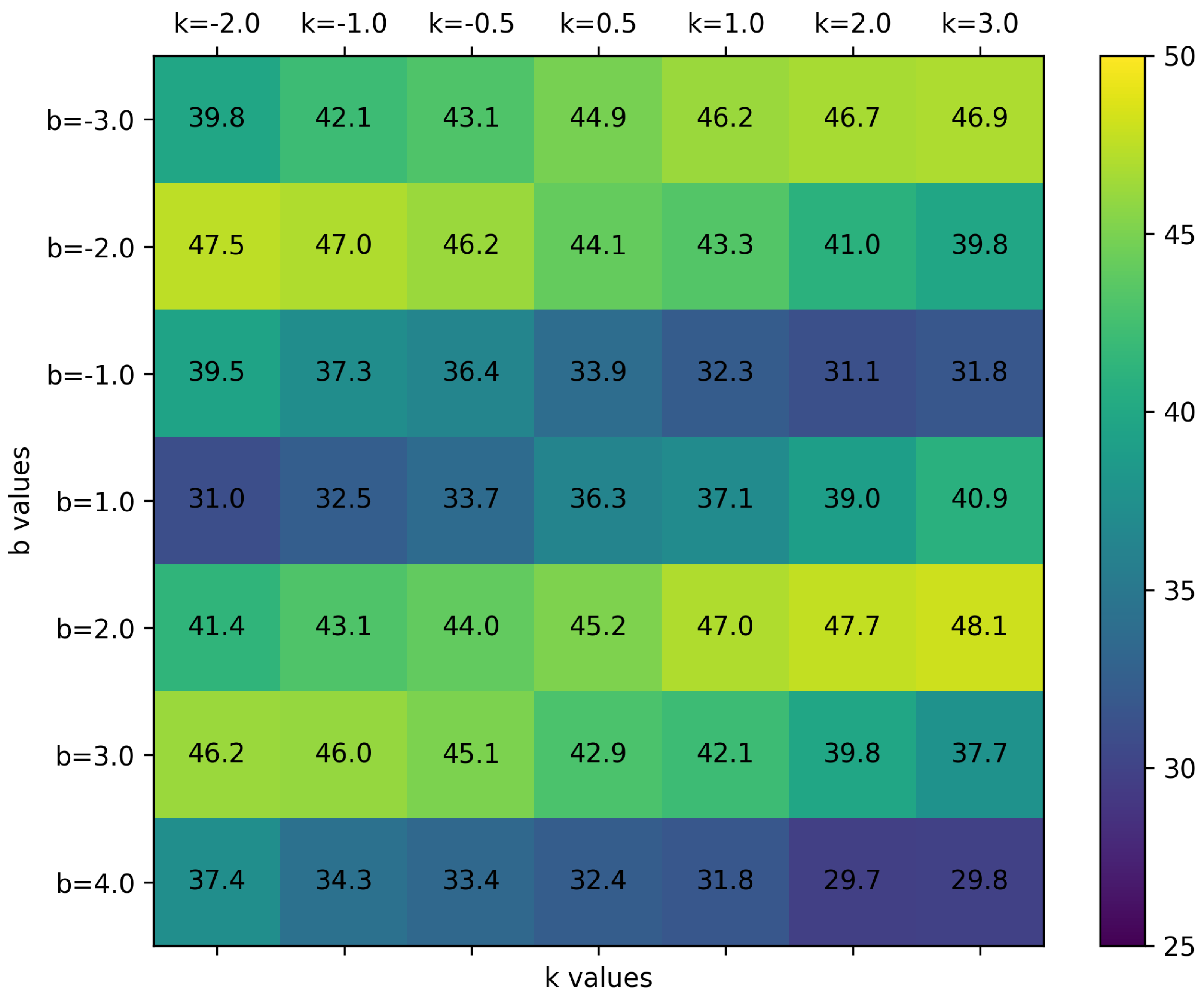b significantly impact the model’s performance, with the best results being 48.1 PSNR when