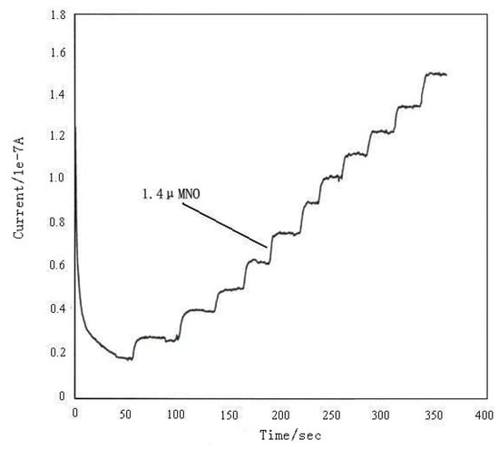 The responses of the modified platinum microelectrode to lower [NO] (<0.1 μM) were not obvious and peak height had not clear changes with NO addition.