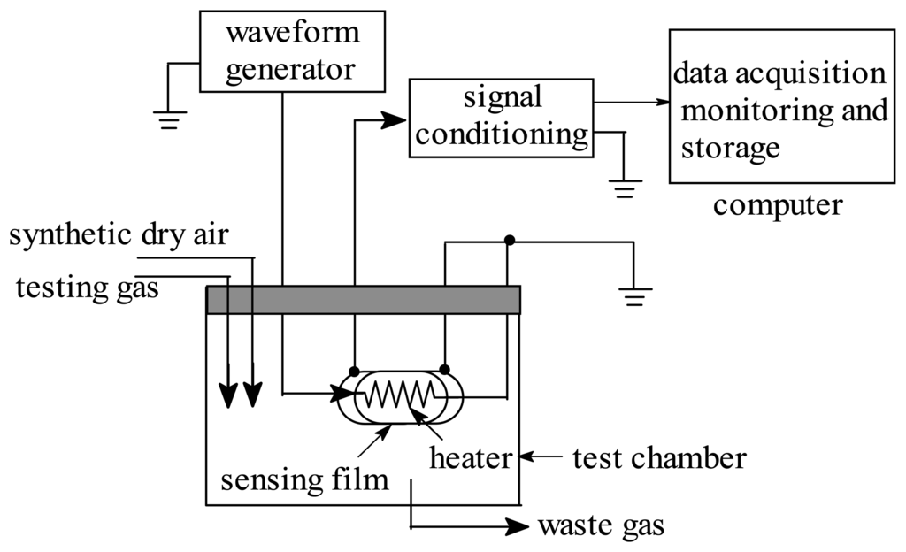 Presently, low-cost tin-oxide chemical sensors applied to gas detection present some well-known problems (lack of selectivity, drift, etc.) which motivates active research in material science, different measurement strategies and signal-processing algorithms, different measurement strategies including sensors arrays, static and dynamic measurements, etc. Several attempts have been focused on dynamic measurements which include temperature transient or pulsed techniques and temperature modulation through oscillation of heater voltage because they have suggested that temperature modulation of tin-oxide sensor provides more information from a single sensor than static measurement [-]. However, these works always focused on the identification of certain gases such as H2S, CO, NO2, CO2, ethanol, methane, n-butane, ethane, propane, propylene, ammonia, and so on under a given constant heating waveform, frequency and operation temperature.