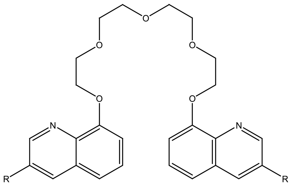 - Sugihara, H.; Hiratani, K. 1,10-phenanthroline derivatives as ionophores for alkali metal ions. Coord. Chem. Rev 1996, 148, 285–299. [Google Scholar]
