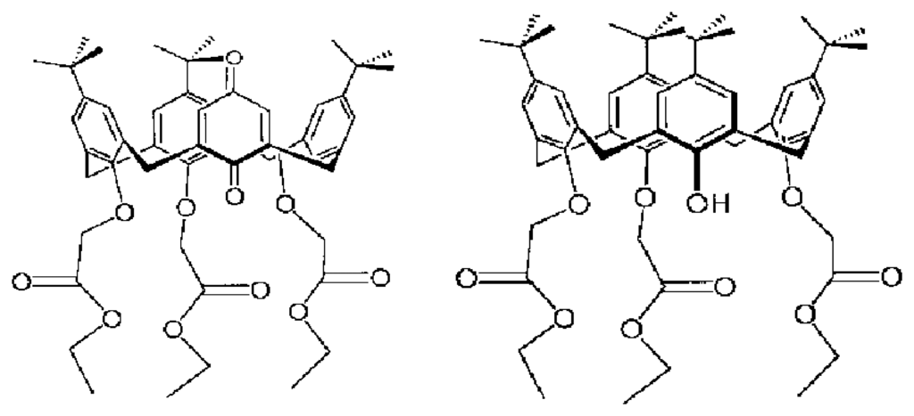 The structure of calixarene ligands to interact with cations, anions, neutral species and their various combinations, is determined by the character of other functional groups bonded to the basic skeleton of calixarenes. Another fascinating aspect of calixarenes is also their conformational variability and formation of stable and separable conformers with different reactivity and binding abilities. Structural and thermodynamics aspects of these changes have been studied NMR spectroscopy and X-ray crystallography.