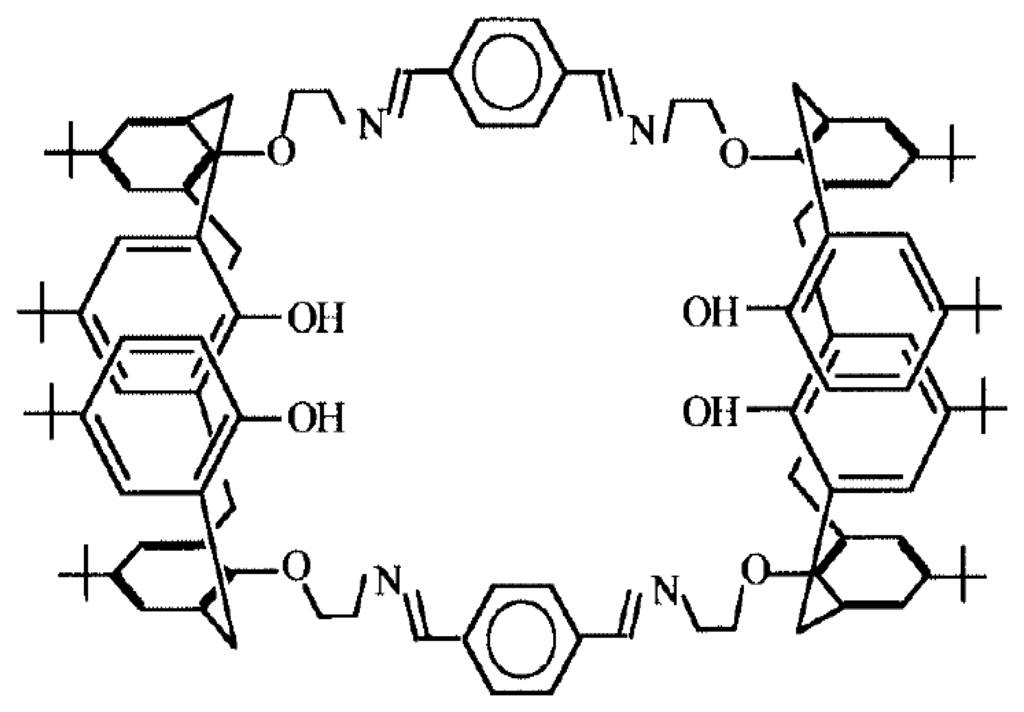 Calixarenes (Figure 12) and their different derivatives like rim-functionalized calixarenes, homoazacalix[n]arenas, oxacalixarene derivatives (Figure 13) (e.g. substituted oxacalixarenes, 4-t-butyloxacalix[3]arene-tris(N,N-dimethylacetamide), azacalixarenes (e.g. 4-methyl-(N-benzyl) azacalix [3]arene, Figure 13) fit into this family. Other compounds that fit into this group are cycloveratrylenes, and cyclophanes [5].