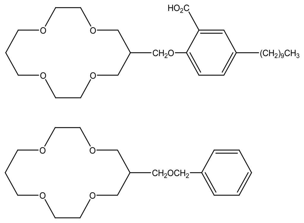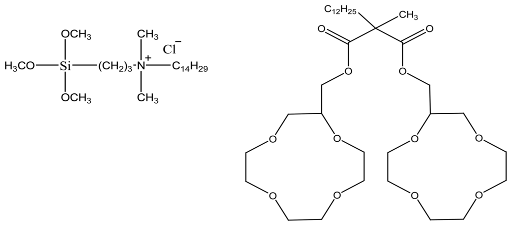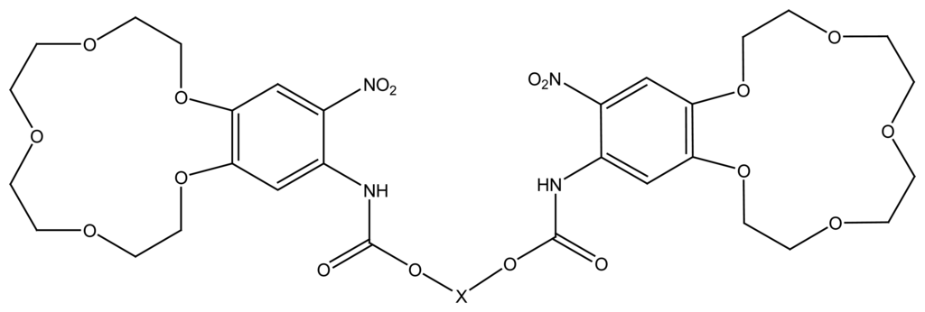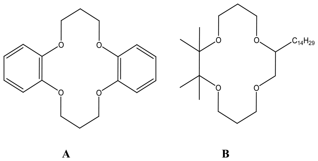 - Luboch, E.; Cygan, A.; Biernat, J.F. Bis(benzocrown ether)s with polymethylene bridges and their application in ion-selective electrodes. Tetrahedron 1991, 47, 4101–4112. [Google Scholar]