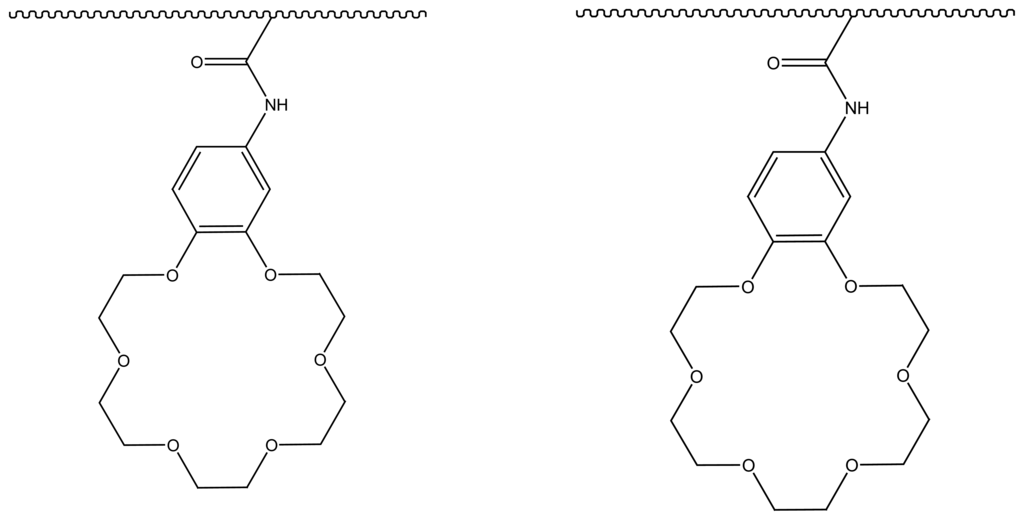 - Kuckling, D.; Pareek, P. Synthesis of transition-metal-ion-selective poly(N-isopropylacrylamide) hydrogels by the incorporation of an aza crown ether. J. Polym. Sci. Part A: Polym. Chem. 2003, 41, 1594–1602. [Google Scholar]