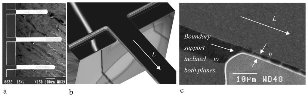 - Mullen, R.; Mehregany, M.; Omar, M.; Ko, W. Theoretical Modeling of Boundary Conditions in Microfabricated Beams. Proceedings of IEEE Micro Electro Mechanical Systems, Conference on Micro Structures, Sensors, Actuators, Machines and Robots; 1991; pp. 154–159. [Google Scholar]