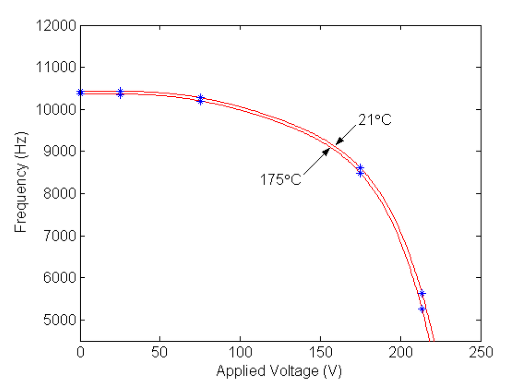 - Han, J.; Zhu, C.; Liu, J.; He, Y. Dependence of the Resonance Frequency of Thermally Excited Microcantilever Resonators on Temperature. Sensors and Actuators 2002, 101, 37–41. [Google Scholar]