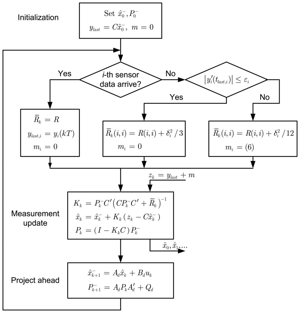 - Suh, Y. S.; Nguyen, V.H.; Ro, Y. S. Modified Kalman filter for networked monitoring systems employing a send-on-delta method. Automatica 2007, 43(2), 332–338. [Google Scholar]