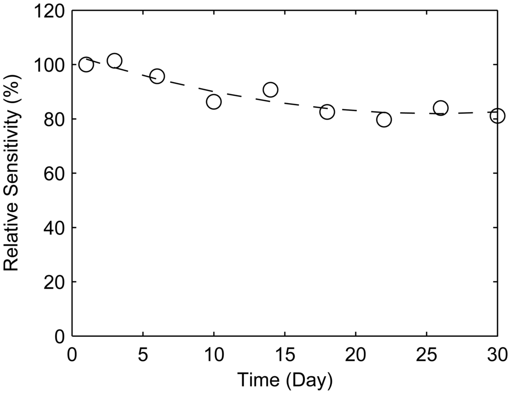 Long-term durability of Polyaniline-coated QCM sensor during 1 month.