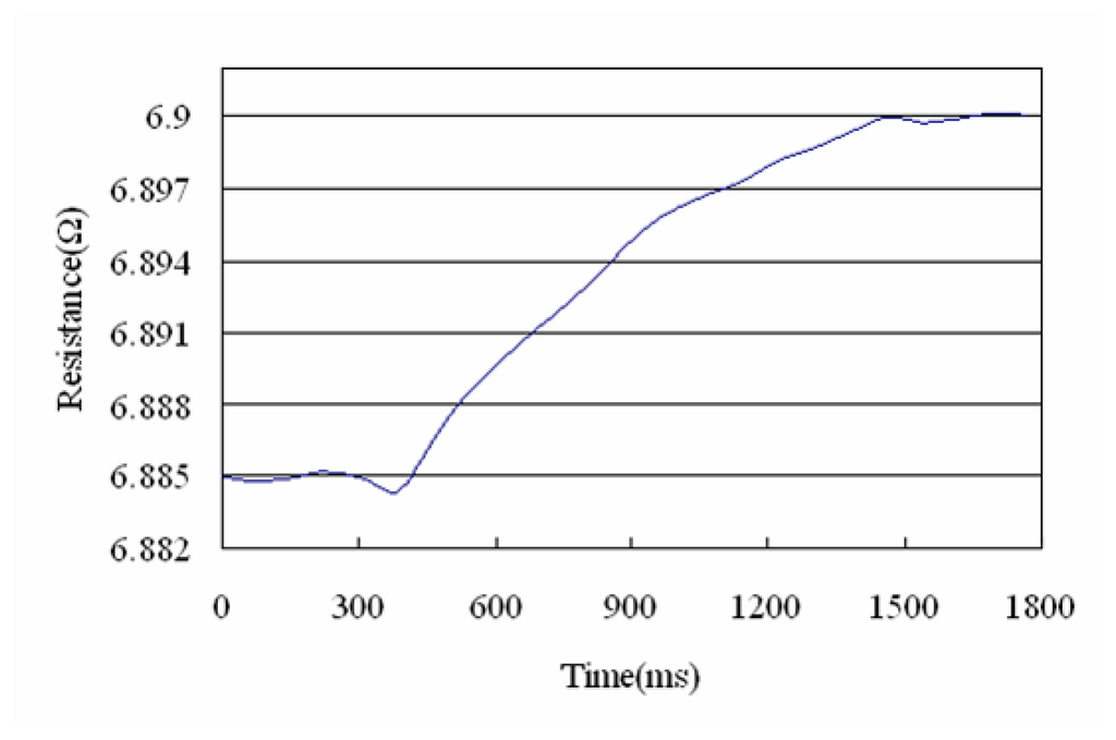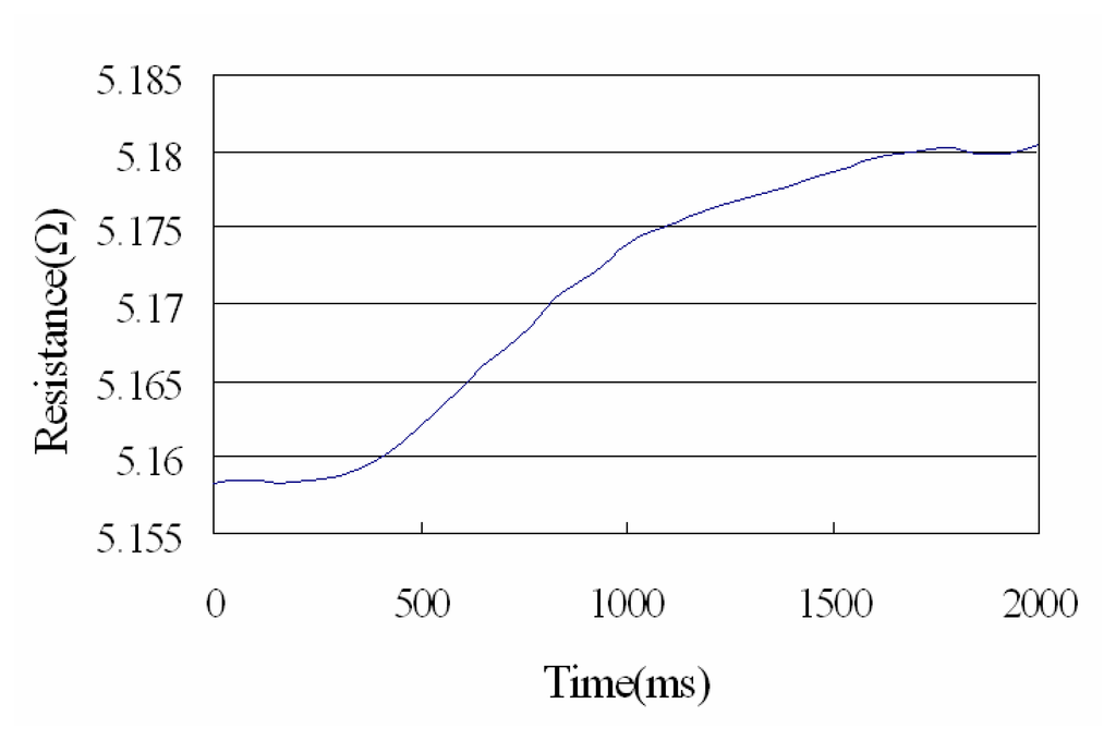 The experimental results indicate that at a constant flow rate of 30 ms-1 and a temperature of 25 °C, the variation in stability of the three flow sensors is found to be 0.0275%, 0.0346% and 0.0450% for cantilever tip width (Wbeam) of 400 μm, 1200 μm and 2000 μm, respectively. As shown the experimental data, the sensors stability decreases with an increasing cantilever tip width. It is clear to know the increasing cantilever tip width not only can enhance the flow sensor sensitivity but also decrease the response time. However, it may cause the flow sensor stability to be reduced. The resonant frequencies of the cantilevers are estimated to be 17.3 kHz, 8.7 kHz and 5.8 kHz, which are far above the possible environmental activation frequency.