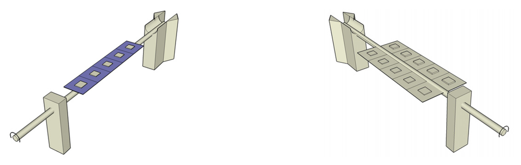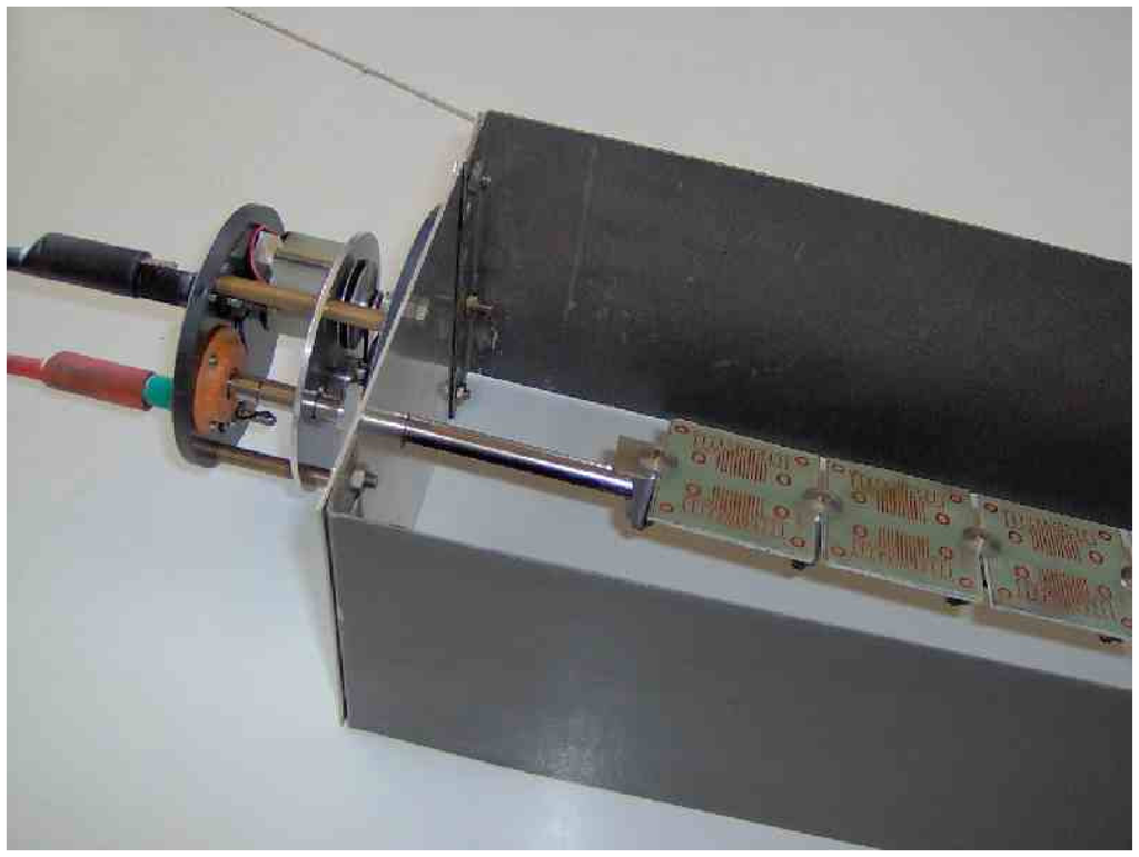 Two variants of tilting movement were used for testing: the axial type (the items are positioned on the axis of the equipment, simulating a device working in cars, trains or airplanes) and the wing type (the items are positioned at a certain distance from the axis, simulating a device placed on the wing of an airplane). In the second case, the movement of the tested device is more complex then the axial tilt. Both types are shown in Figure 3.