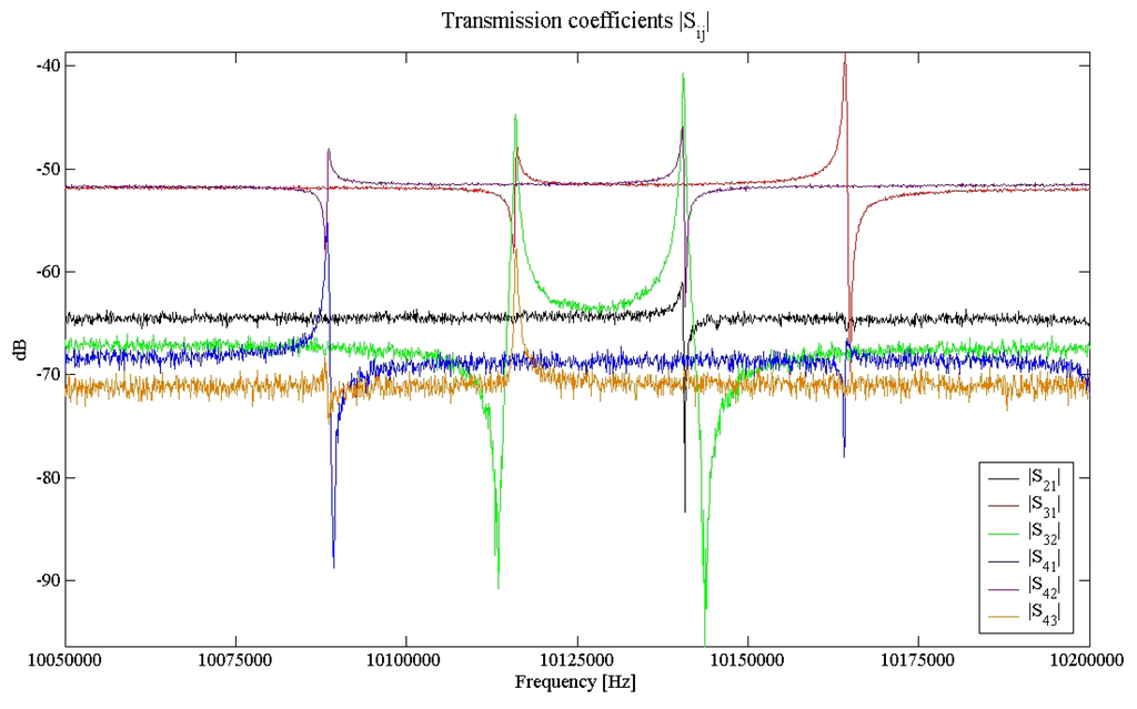 The implemented MQCM (Figure 1) is a four-ports network, characterized by a scattering matrix, representing the reflected and transmitted powers at each port, in the frequency domain. In this way, the network is fully characterized by knowing the 10 independent coefficients, Sij.