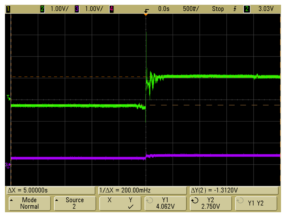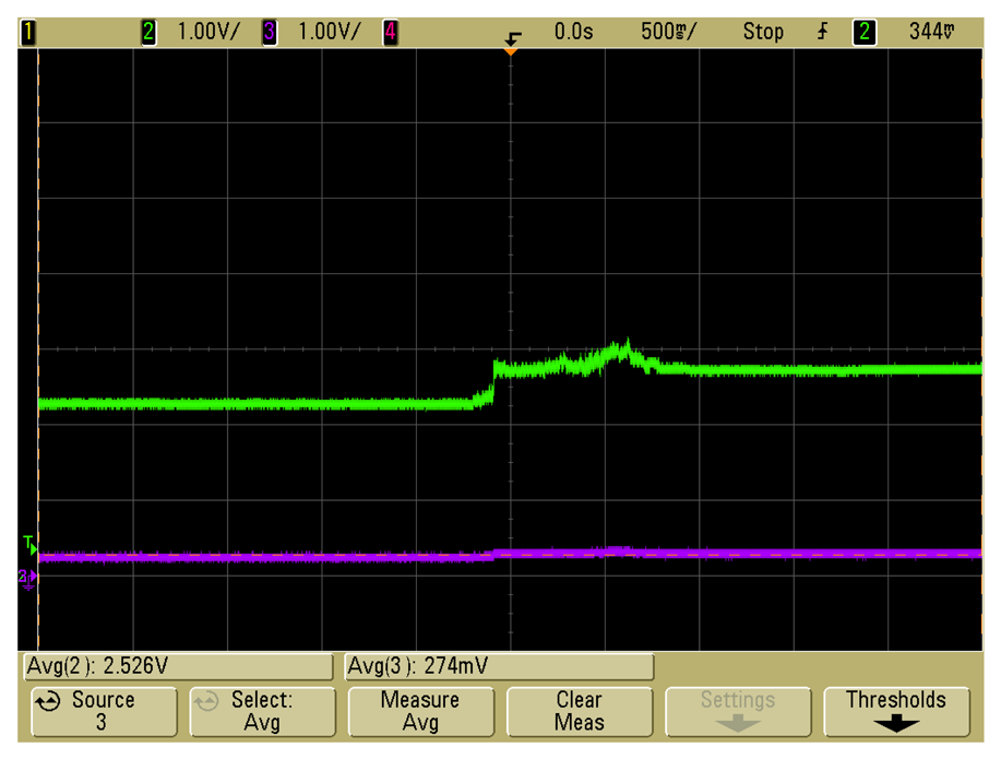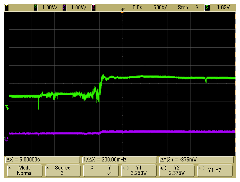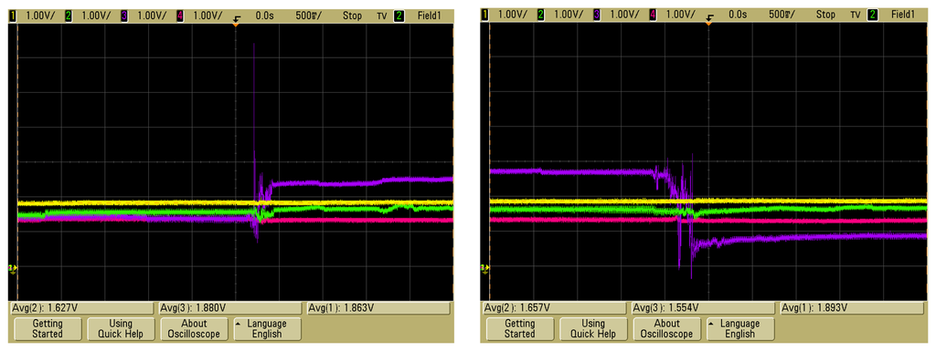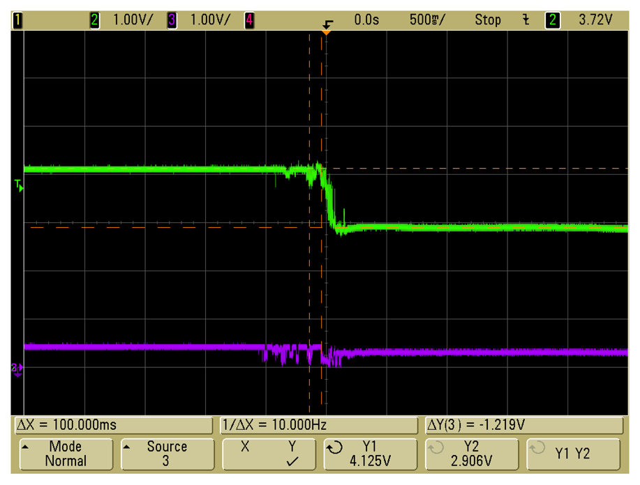 A decrease of 875mV is observed in 250ms (Figure 14). This was due to the reduction in resistance on the left-hand side which caused a reduction in the difference in the voltage measured.