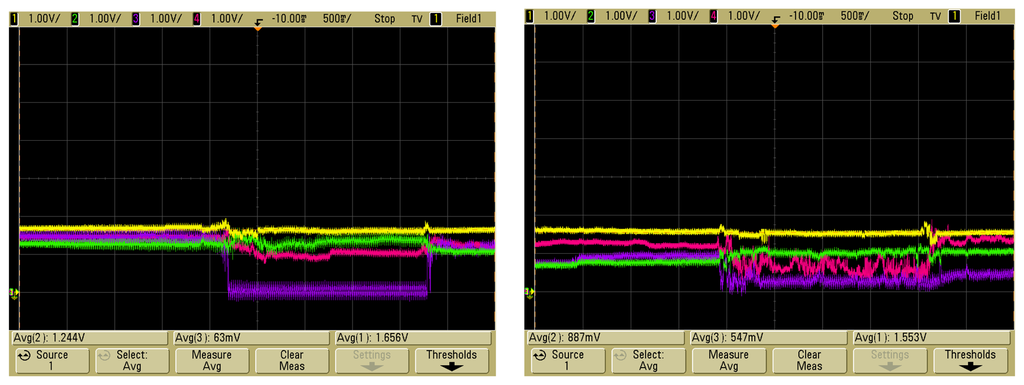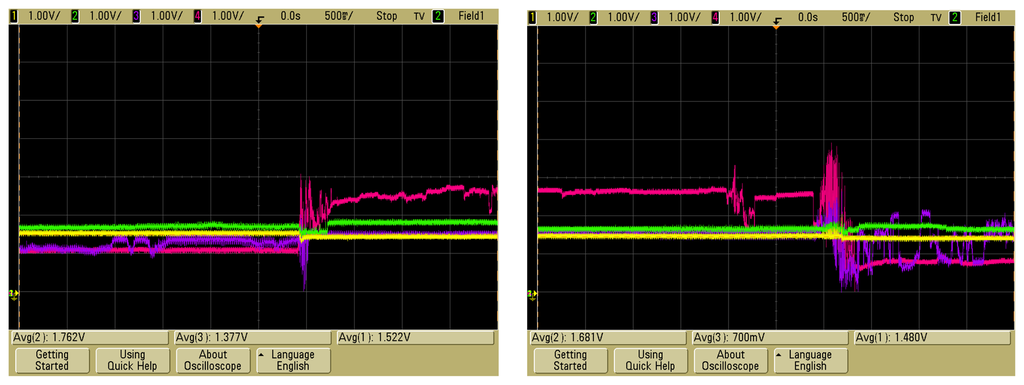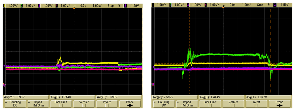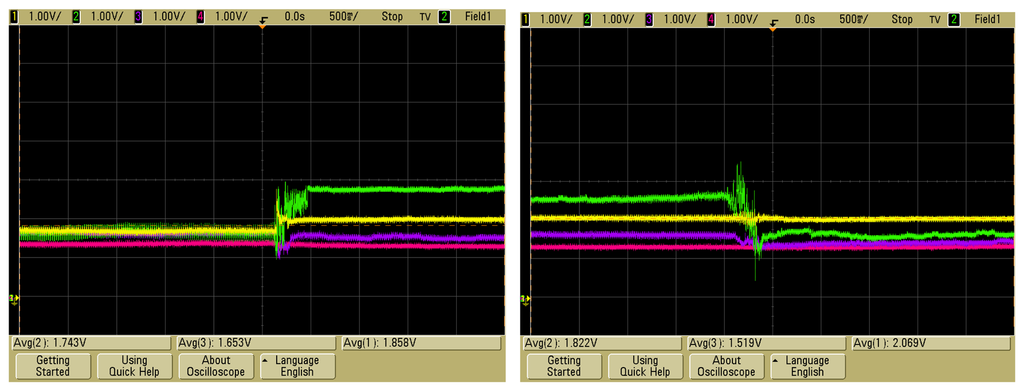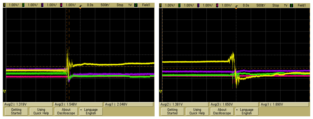 In Figure 15 can be seen the increase in tension was 875mV in 250ms when the weights were removed.