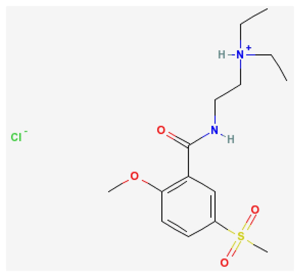 - Spano, R.F.; Trabucchi, M.; Corsini, G.U.; Gessa, G.L. Sulpiride and other benzamides,Experimental and Clinical Pharmacology; Raven Press: New York, 1979. [Google Scholar]