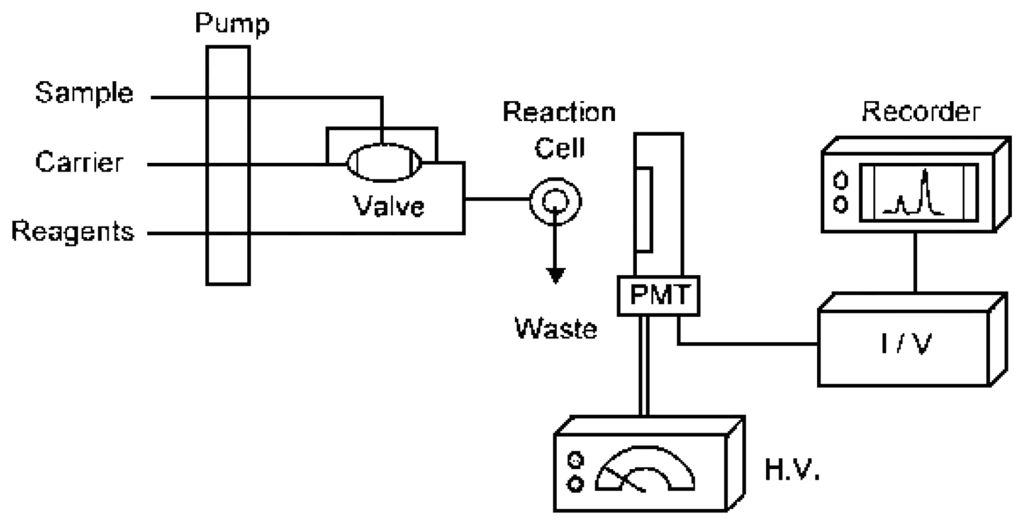 schematic illustration of a typical FI-CL analsis apparatus.
