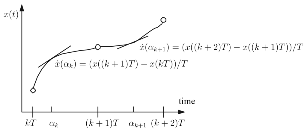 If we take two terms from the right hand sides of (1) and apply Euler approximation (ẋ(kT) ≈ (x(kT) − x((k − 1)T))/T), we obtain the following: