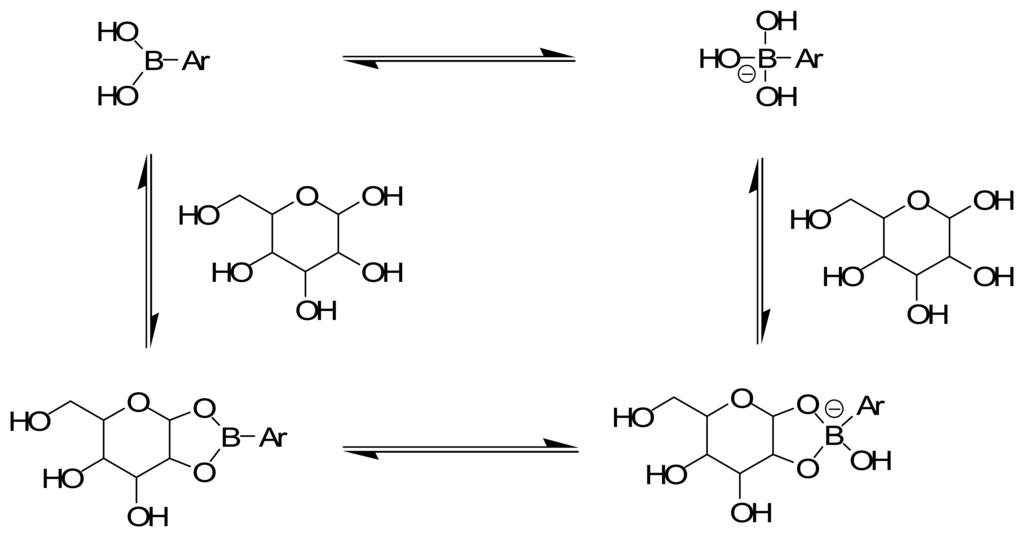 - Selected recent reviews: James, T. D.; Shinkai, S. Artificial receptors as chemosensors for carbohydrates. Top. Curr. Chem. 2002, 218, 159–200. [Google Scholar]Wang, W.; Gao, X. M.; Wang, B. H. Boronic acid-based sensors. Curr. Org. Chem. 2002, 6, 1285–1317. [Google Scholar]Striegler, S. Selective carbohydrate recognition by synthetic receptors in aqueous solution. Curr. Org. Chem. 2003, 7, 81–102. [Google Scholar]Cao, H. S.; Heagy, M. D. Fluorescent chemosensors for carbohydrates: A decade's worth of bright spies for saccharides in review. J. Fluoresc. 2004, 14, 569–584. [Google Scholar]Pickup, J. C.; Hussain, F.; Evans, N. D.; Rolinski, O. J.; Birch, D. J. S. Fluorescence-based glucose sensors. Biosens. Bioelectron. 2005, 20, 2555–2565. [Google Scholar]Yan, J.; Fang, H.; Wang, B. H. Boronolectins and fluorescent boronolectins: An examination of the detailed chemistry issues important for the design. Med. Res. Rev. 2005, 25, 490–520. [Google Scholar]Hilt, J. Z.; Byrne, M. E.; Peppas, N. A. Microfabrication of intelligent biomimetic networks for recognition of D-glucose. Chemistry of Materials 2006, 18, 5869–5875. [Google Scholar]