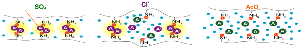 Contraction: ionic crosslinking decreases in the order SO4- > Cl- > AcO- anions [].