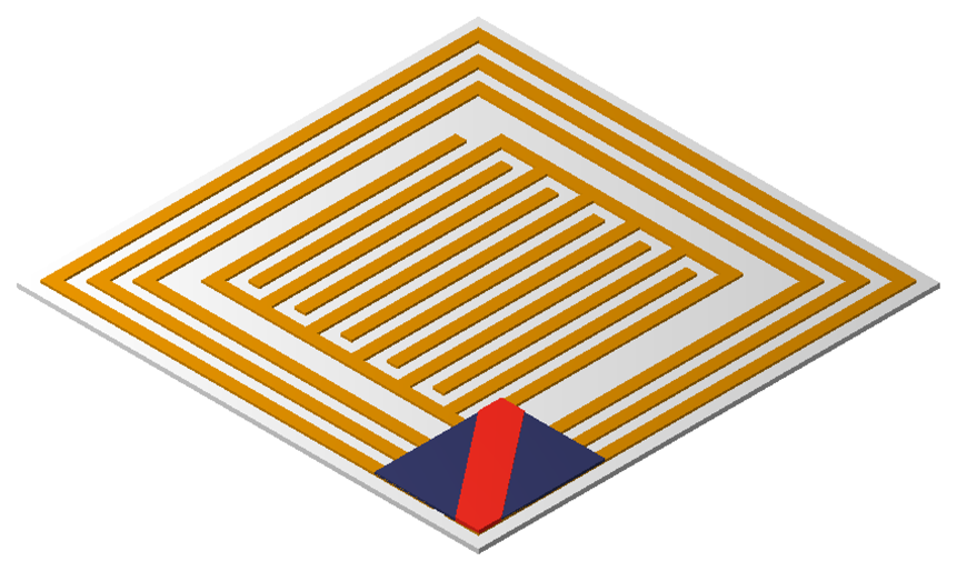 where lc is the length of the IDC fingers, Nc is the number of fingers on each IDC's terminal, ε0 is the free space permittivity, εr is the relative permittivity (dielectric constant) of the paper substrate, dc is the total spacing between two adjacent fingers, ds is the spacing between two adjacent fingers that is not covered by the conductor, and K is the complete elliptical integral of the first kind. Similarly, the inductance of the square spiral inductor, L, is dependent on its dimension given as [9]: