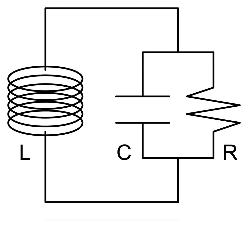 The sensor is modeled as an inductor L and capacitor C connected in series. The capacitor loss is represented by the resistor R.