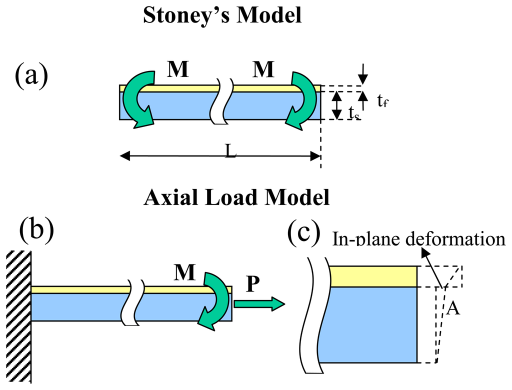 - Zhang, Y.; Zhao, Y.-P. Applicability range of Stoney's formula and modified formulas for a film/substrate bilayer. J. Appl. Phys. 2006, 99, 053513. [Google Scholar]