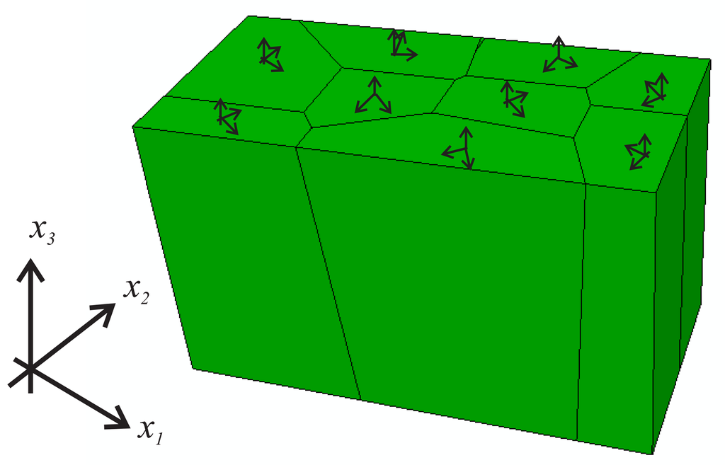 The polycrystalline silicon here studied has a columnar structure, being obtained via epitaxial growth from a flat substrate. Furthermore, the texture axis can be assumed coincident with axis x3 (see Figure 1), i.e. perpendicular to the substrate surface.