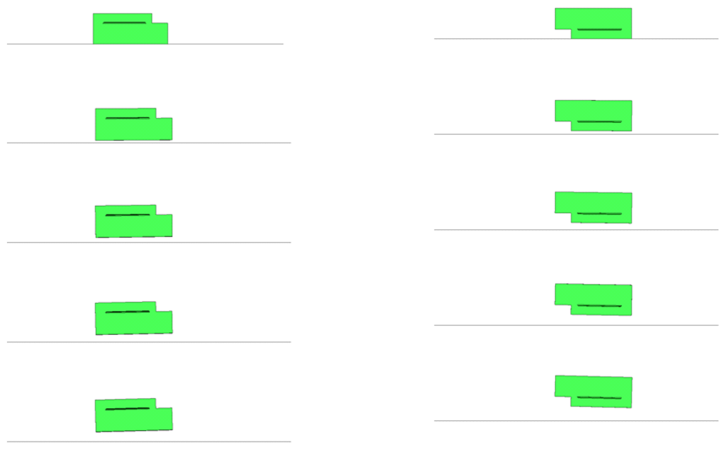 Because the cap is asymmetrically positioned with respect to the center of gravity of the whole die/cap assembly (see Figure 2), while falling and bouncing the assembly is affected by a rotation around axis x2. To account for the effects of this tilting, two different collisions with the target surface have been explored, see Figure 3: in the first one (bottom case) the die strikes the target surface with its bottom surface; in the second one (top case) the die strikes the target surface up-side down, leading to a contact with the upper surface of the cap. According to symmetry, tilting around axis x1 has been prevented.