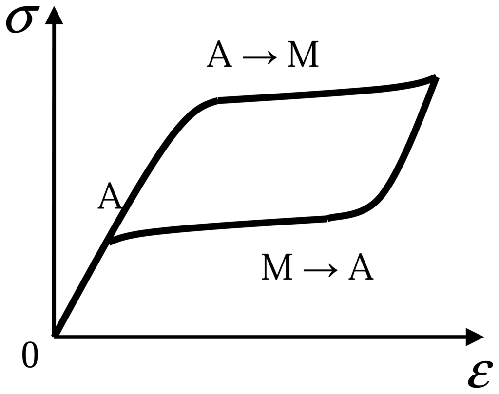 Schematic sketch of the pseudoelasticity hysteresis behavior.
