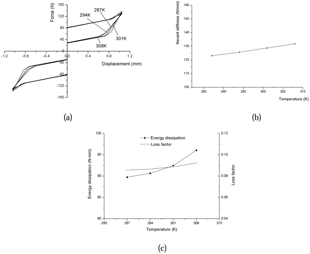 Based on the experimental results of NiTi wires obtained above, the damping property of the proposed micro-damper model may be assessed prior to realization. For this purpose, three mechanical quantities, involving secant stiffness Ks, energy dissipation ΔW and loss factor η, are mainly considered in this study.