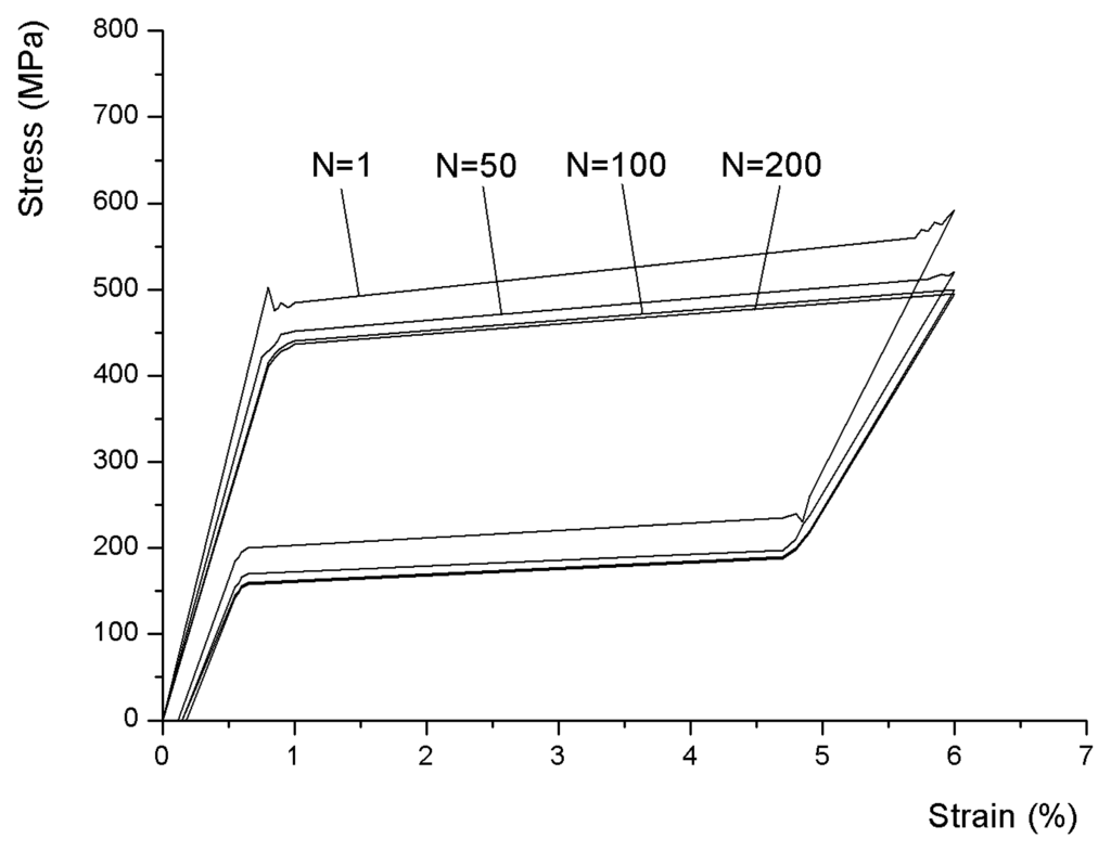 The stress-strain curves obtained with various strain amplitudes of 3, 4, 5 and 6% under constant temperature of 294K and low strain rate of 1×10-3s-1 are shown in figure 10.