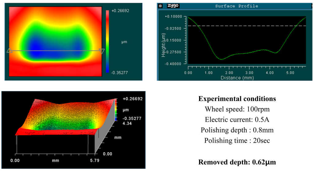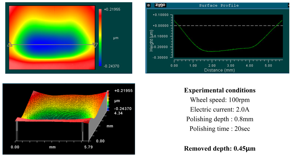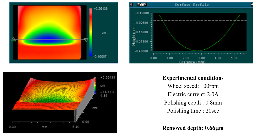 Measured results after MR polishing using alumina slurry No.4 (100rpm and 2.0A).