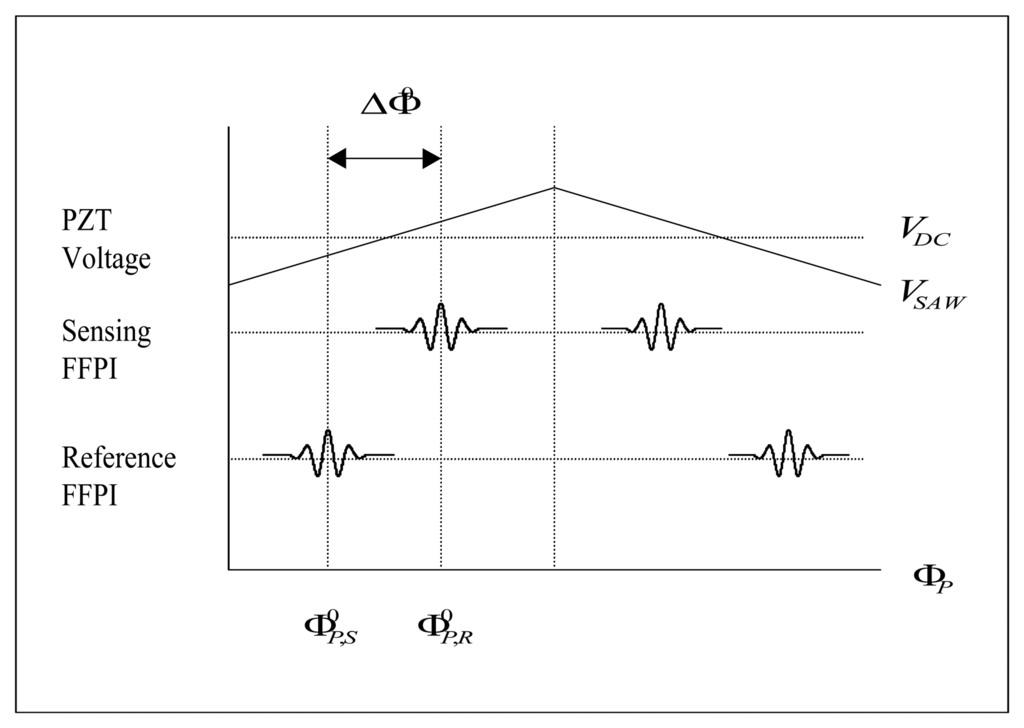Typical sensor and reference fringe scan are shown in Figure 2b. In Eq. (1) and (2), the OPD ΦP of the AFMZI, the optical phase differences induced by the sensing FFPI (the phase difference to be measured) and the reference FFPI are given by