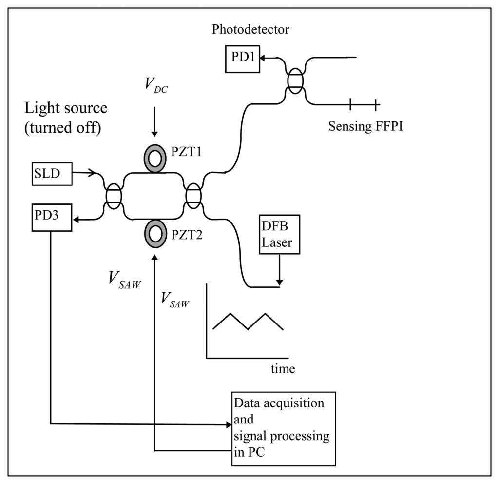 - Donlagić, D.; Cibula, E. An all-fiber scanning interferometer with a large optical path length difference. Opt. Laser. Eng. 2005, vol. 43, 619–623. [Google Scholar]