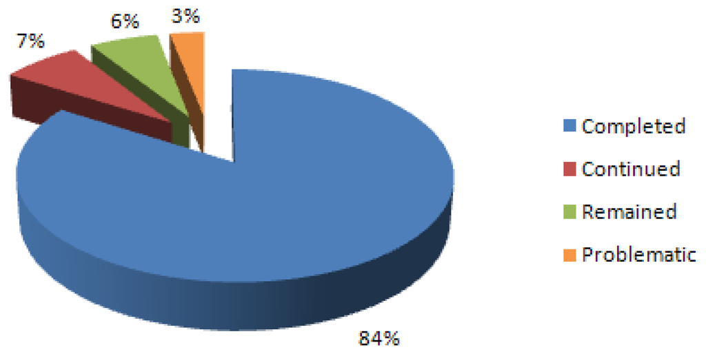 All these reasons indicate that first a legal arrangement is necessary. Secondly, a new cadastral concept should be formed in a multipurpose cadastre context. It maybe includes gathering land use related data in a re-cadastre []. After 2005, private sector was involved in cadastre works and according to the TKGM official website [], 84% of cadastre works have been finished and rest of cadastre will be completed by the end of 2008 (Figure 1).