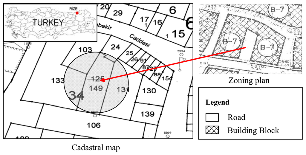 “A shop built under parcel 125 (was changed after being registered to 149); block 34 in Çarşı district, Rize province of Turkey (Figure 3). The land including the shop underneath will be registered as a road attribute to Rize Municipality and legal documents will be arranged in the name of the shop's owners according to Civil Law section 652 or 751. Also the surface right will be established and this procedure will be done under direction of notice 1508 (Number: 1001-1525/9-1331, Subject: Registration, Date: 5 April 1991)”.