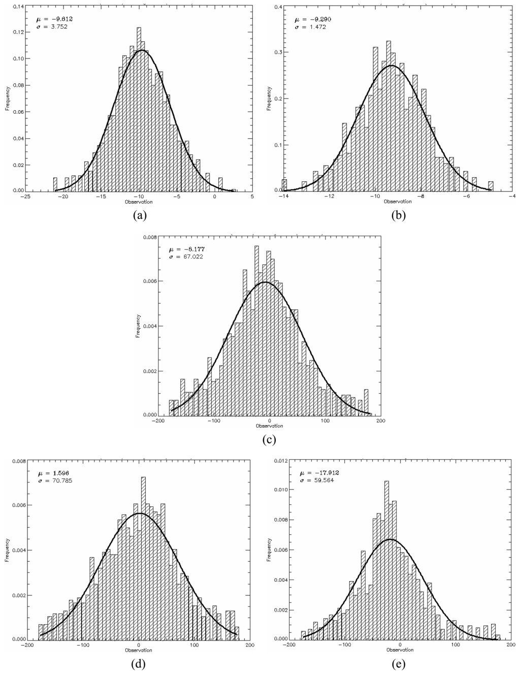X-band PPD's histogram for all regions in comparison to theoretical Gaussian distribution (solid line).