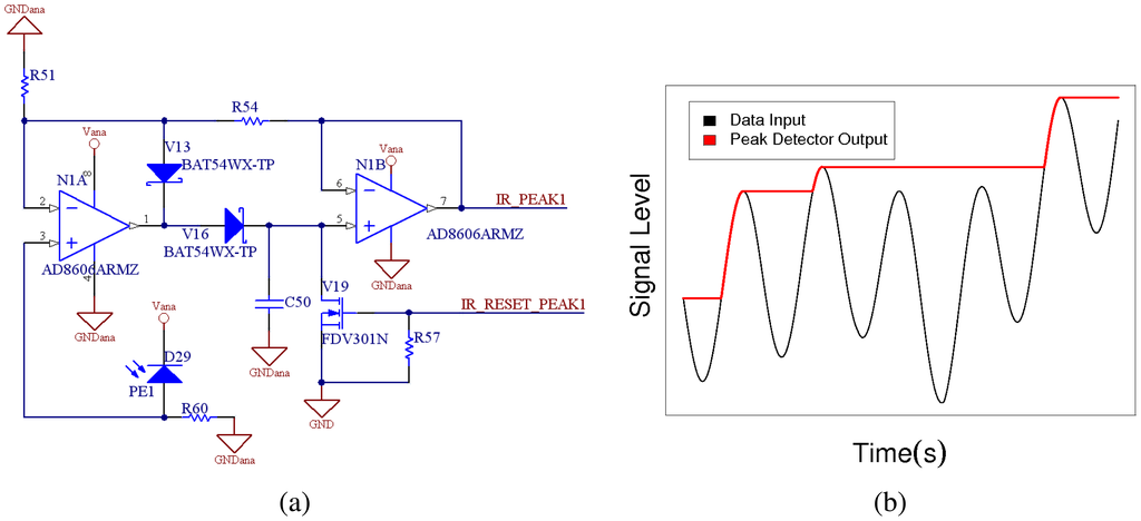 (a) Schematic of one peak detector module. (b) Signal intensity detection.