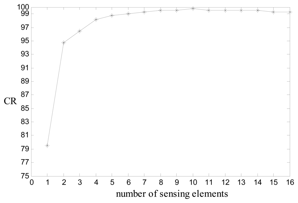 s = {1, 2 … 16} configured as described in Section 2.4. The highest CR obtained for each subset of sensing elements was recorded. The results reported in