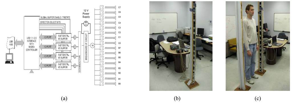 Figure 4(b) is a photograph of the transmitting/receiving platform with the sensing elements interfaced to a host computer in the laboratory environment and
