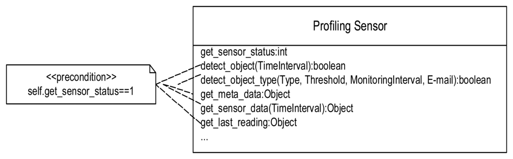 Figure 7 using the Unified Modeling Language (UML). Note that the majority of the service calls require the sensor to have completed a successful self test to ensure the sensor is aligned and operating correctly, which is represented as a UML pre-condition constraint in