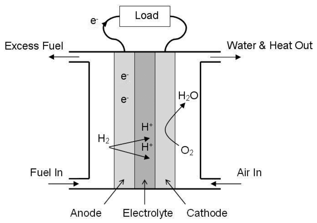 Example of a polymer electrolyte membrane (PEM) fuel cell.