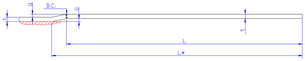 Schematic cantilever beam profile with geometrical dimensional parameters.