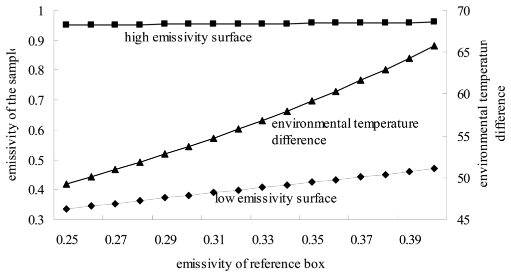 The above method for calculating emissivity is established on the basis of the series measurements respectively conducted in hot environment and in cool environment. It is by means of the irradiance difference of hot environment and cool environment that the emissivity can be retrieved. However, in the case that the irradiance difference of the two environments is small, it is highly possible that the emissivity can not be obtained due to large signal/noise ratio results from random errors and measurement errors during the measurement. That is to say, there exists a threshold for the irradiance difference of the two environments above which surface emissivity can be retrieved.