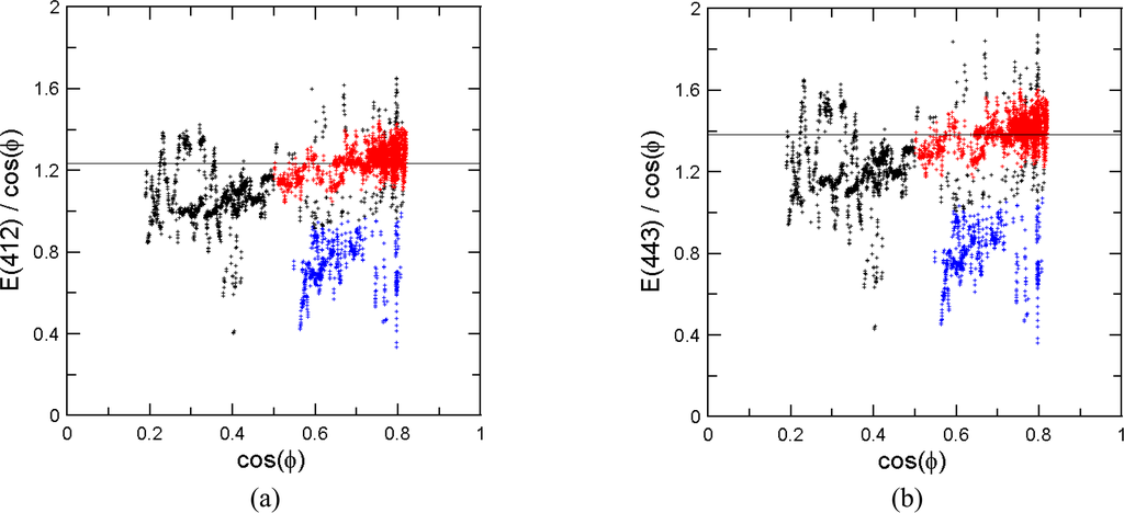 - Hooker, S. B.; Lazin, G.; Zibordi, G.; McLean, S. An evaluation of above- and in-water methods for determining water-leaving radiances. J. Atmos. Oceanic Technol. 2002, 19, 486–515. [Google Scholar]