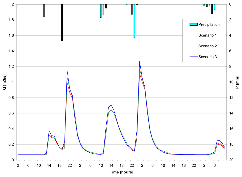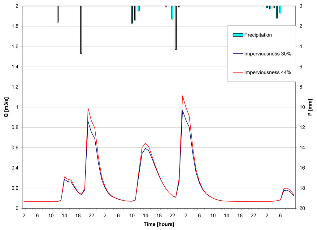 3.3.2. Scenario 2: Land-use specific distribution of impervious surfaces (semi-distributed approach)