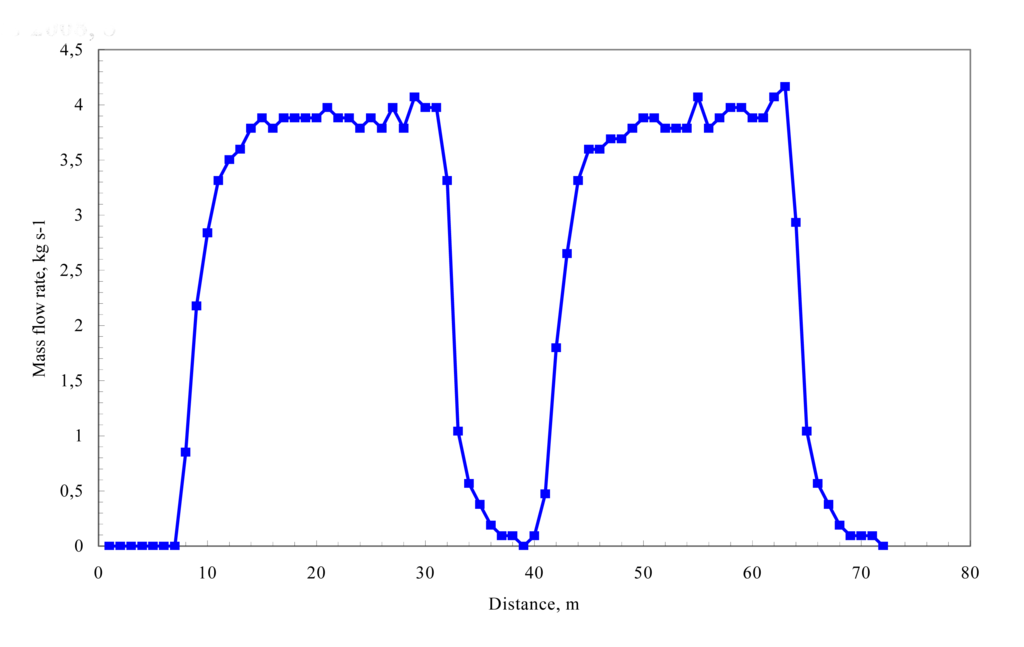 It has been shown that the scheme for calculating the yield at combine head using the flow rate measured at the yield sensor is in essence the same in the referred studies so far where flow rate, ground speed, and cutting width data are incorporated to derive the yield at the combine head. The studies conducted by Searcy et al. (1989) and Birrell et al. (1996) differ from the others in that they both used paddle wheel flow sensor that does not measure flow rate periodically. The flow signal requires data processing to obtain a periodic signal necessitating further manipulation of the flow data.