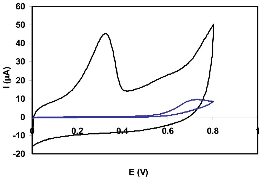 Cyclic voltammetry and amperometry experiments were performed using an electrochemical analyzer μAutolab type III connected to a PC for collecting the data. The electrochemical cell was assembled with a conventional three-electrode system: the glassy carbon (GC) electrode as working electrode, an Ag/AgCl reference electrode and a Pt counter electrode.