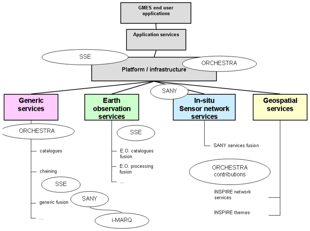 The setup of the SANY project is twofold. Firstly, there are numerous projects developing IT architectures (such as ORCHESTRA) which are taken into account in the design phase in order to build on this work.
