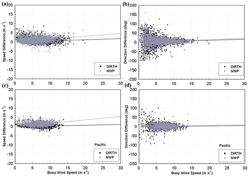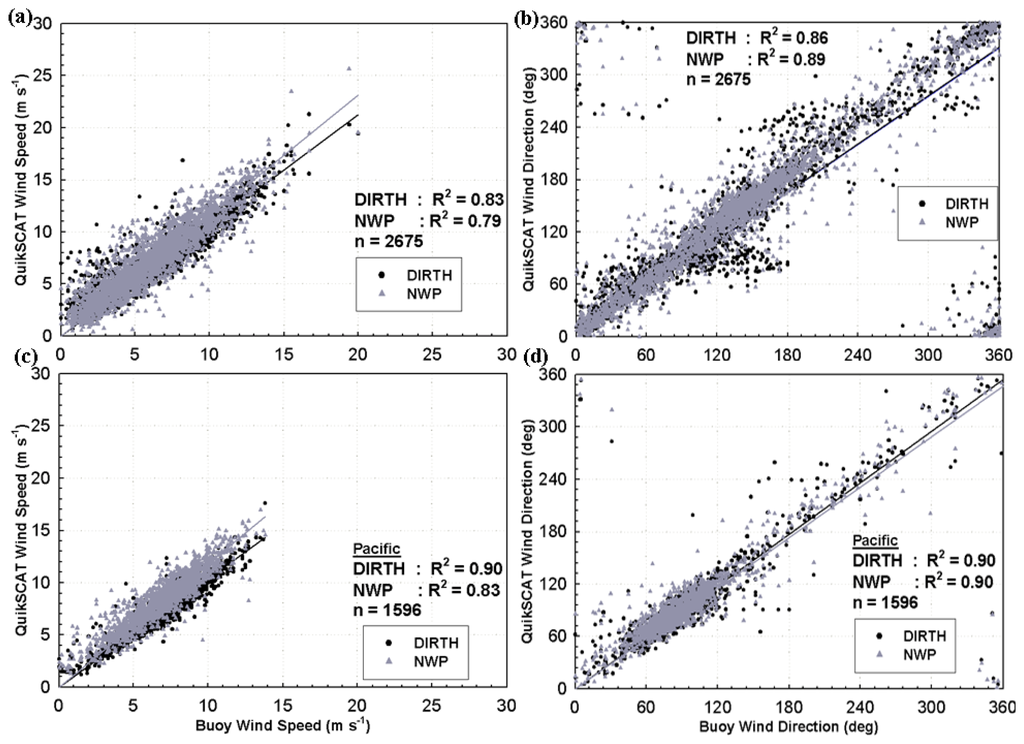 - Stiles, B.W. Special Wind Vector Data Product: Direction Interval Retrieval with Threshold Nudging (DIRTH), Product Description. Version 1.1. Jet Propulsion Laboratory. 1999. [Google Scholar]