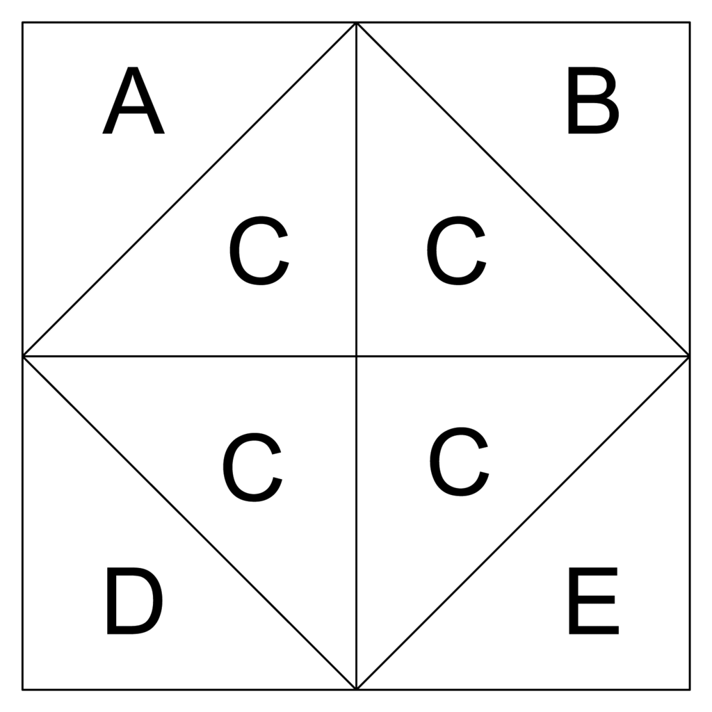 Although the pixel was divided into 8 small triangles, four triangles in the centre were grouped as one since there wasn't any way to determine the smaller triangles' concentration independently based on the sensor readings. Thus, there were 5 parts, namely A, B, C, D and E. Object that is present at any of these 5 parts could be determined by back projecting the respective sensor readings. By dividing the pixel into 5 smaller parts, each of the small parts can be set as valid or invalid during concentration calculation. This differs from previous work by Pang where the whole pixel was set to a concentration value (using orthogonal layer values) upon confirming that an object exists at that pixel (using only 2 rectilinear layer values).